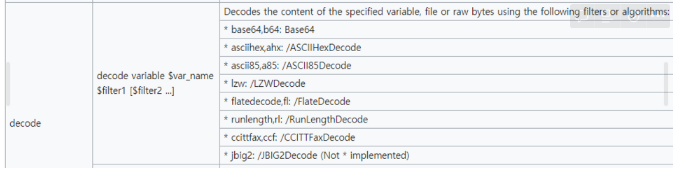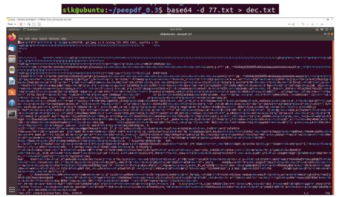 peepdf 사용법에 대해서 알아보던 중 decode 부분에서 다양한 인코딩 방식을 디코딩 해준다는 것을 알게 되었고, 이 기법들 중 하나일 것이라고 생각하여 base64부터 시도해보았다.