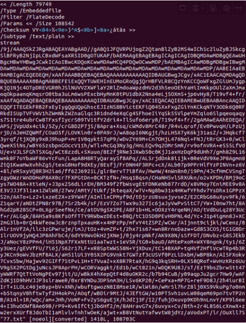 77.txt 속의 stream 내용만 남긴 후 base64 decoding하여 dec.txt에 저장하였다.